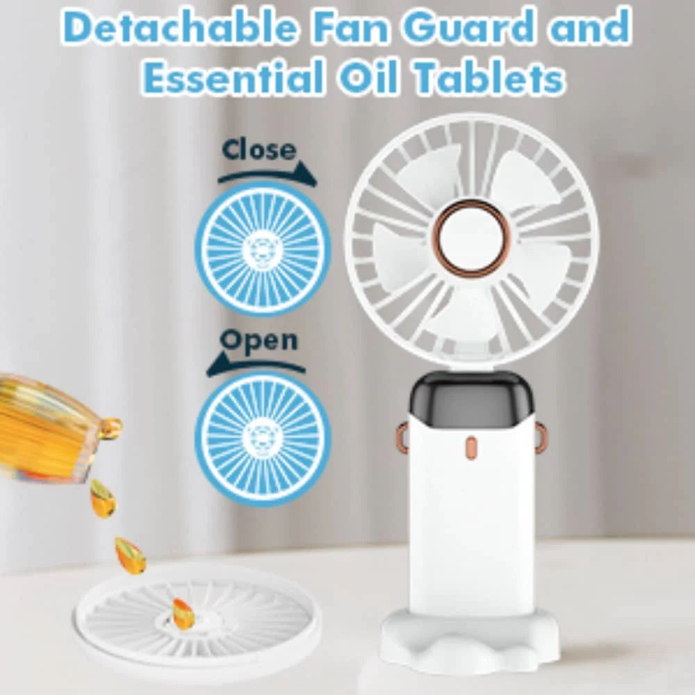 The cover of this pocket fan is removable for cleaning. Simply twist the desk fan cover counterclockwise and then easily remove it. Daily cleaning of the fan grille not only prevents allergies caused by dust buildup but also prolongs the life of the fan.