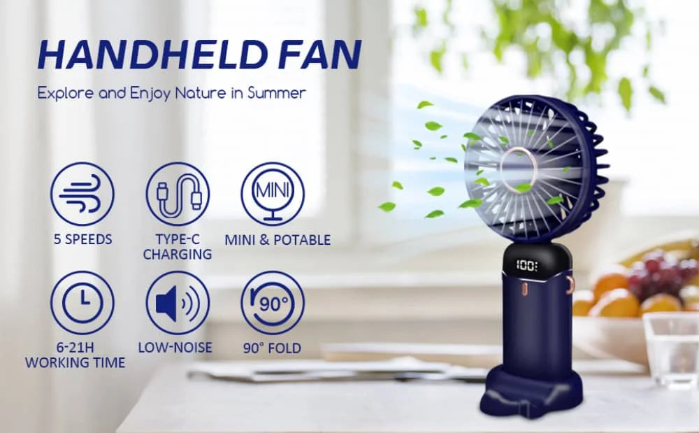 【Multifunctional Fan】The LED screen displays real-time power and wind speed, so you don't have to worry about sudden shutdowns, and you can monitor power anytime. Portable and easily fits into most bags. Ultra-quiet motor design, you won't feel too noisy.