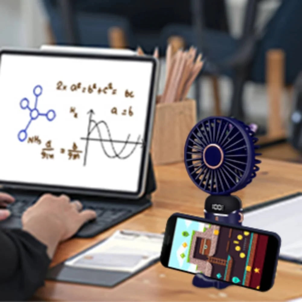 Each of our fans comes with a base. Simply place the USB mini fan on the base to serve as a desk fan and a convenient phone stand. This way, you can enjoy a cool breeze while watching TV shows or playing games.
