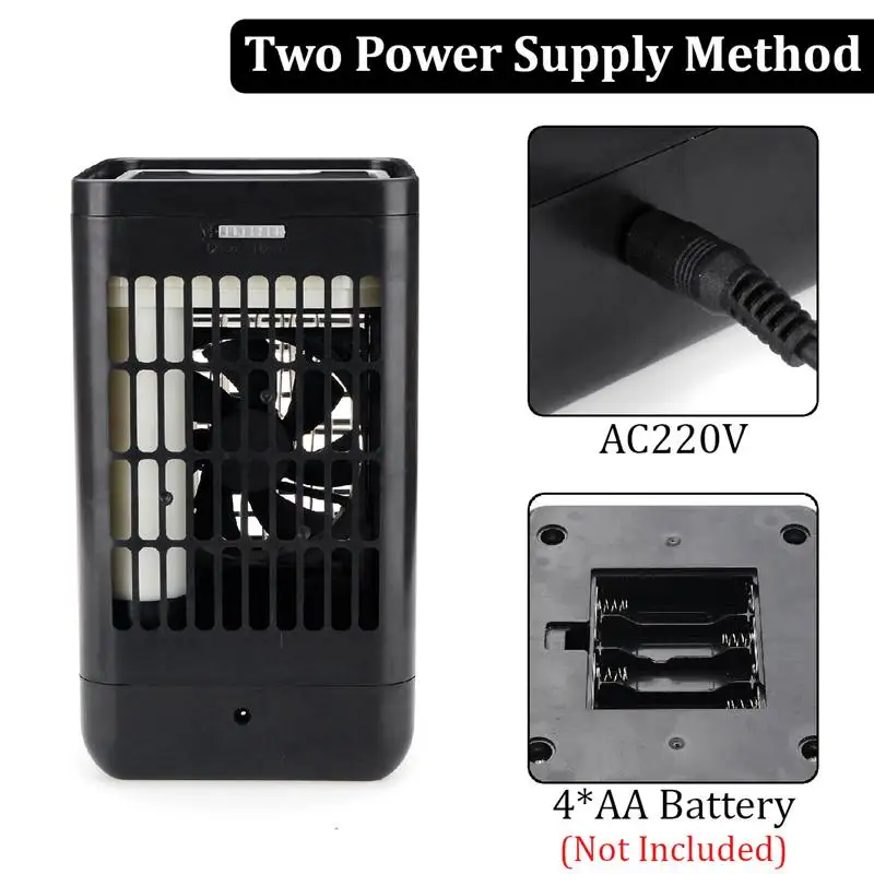 Specification: Color: Black Plug: EU plug/US Plug Material: ABS Voltage: EU Plug 220V/ US Plug 110V Size: 12.5*15*23cm Frequency: 50-60HZ Numbers of Mode: 2 Tank Capacity: 400ml Battery Type: 4*AA battery(Not included) Application: Home, office, camping, outdoor activities, etc.