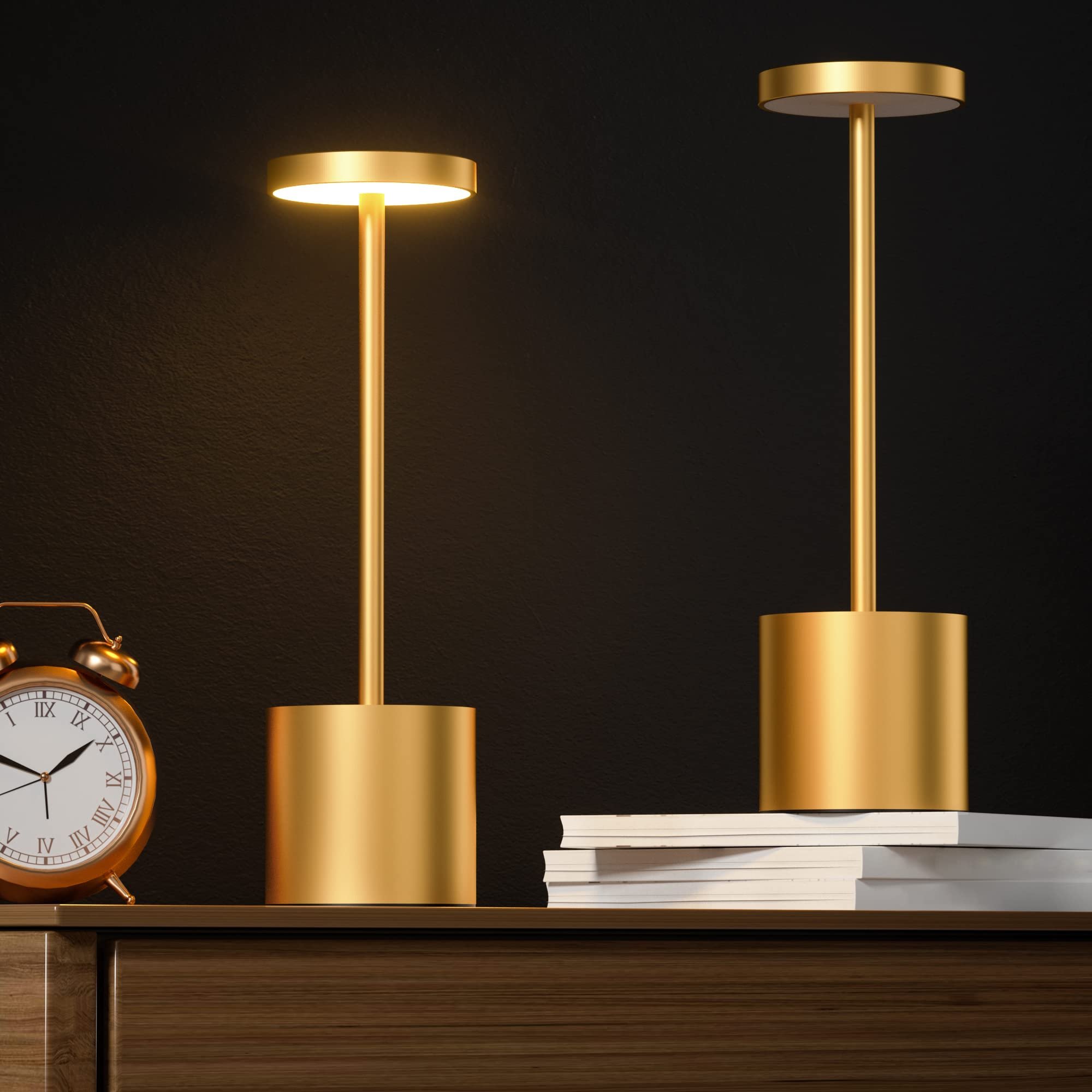 【Aluminum Metal Desk Lamp】:This modern cordless lamp is made of high-quality metal, with a matte coating process, aluminum alloy body, scratch-resistant and durable. Button Switch Control It is more durable and will not cause the touch screen to malfunction. Also, it's the perfect gift for friends and family.