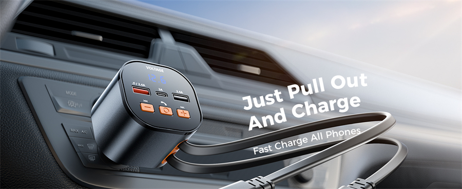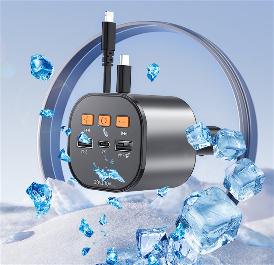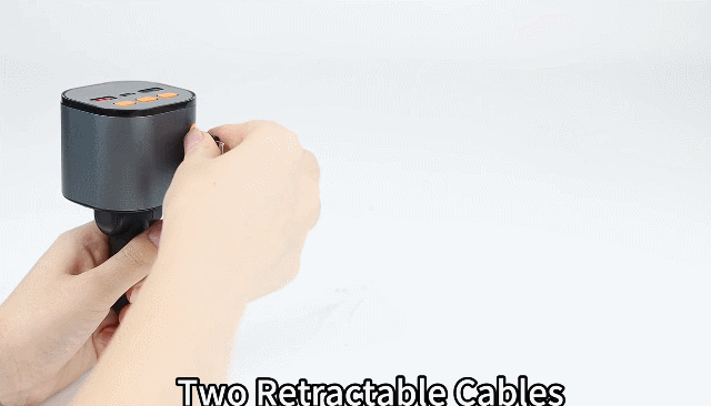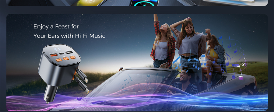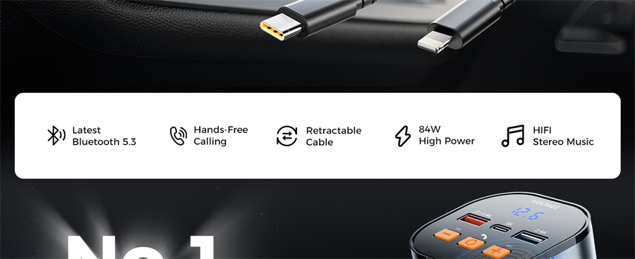 ⚡ PD USB C & Lightning Retractable Cables - To enhance your driving experience, our fm transmitter includes a 30W USB C and a 12W USB Lightning retractable cable, eliminating the need for extra cords and effortlessly charging both Apple and Android devices. The retractable cables of car charger extend up to 80cm and retract smoothly for a tidy car interior.