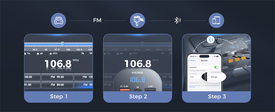 This bluetooth FM transmitter is equipped with multiple protections such as over-current, over-voltage, over-heat and short-circuit, ensuring safe charging while driving!