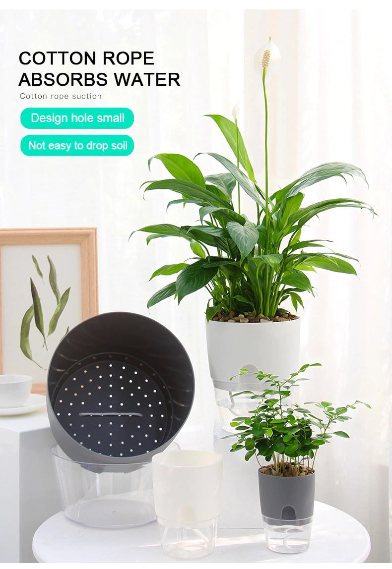 Double layer structure allows water and air to be storaged in the bottom of this planter. The pot with holes for better moisture of the roots and easy oxygen circulation, prevent plant death caused by waterlogging.