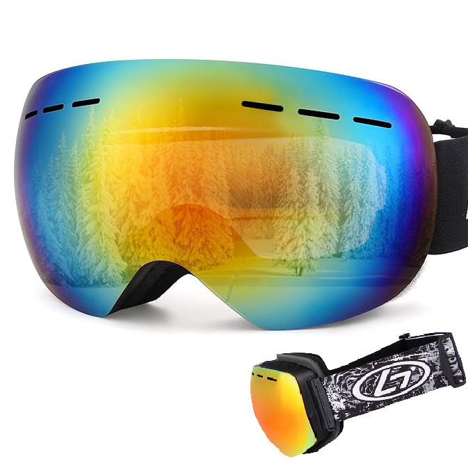 Professional adult ski goggles have a frameless design. The lenses of the ski goggles are very clear,offering exceptional UV and glare protection(UV400+,Effective UV blocking ≥98%).Winter sports goggles will give you an open and clean view of the beautiful snow when skiing downhill.The lenses of these snowboard goggles are over twice as clear as ordinary lenses, facilitating precise judgment in high-speed skiing. The panoramic cylindrical lens eliminates angular misalignment and vertigo, offering efficient side-to-side and forward viewing, thus making it ideally suited for snowboarding.