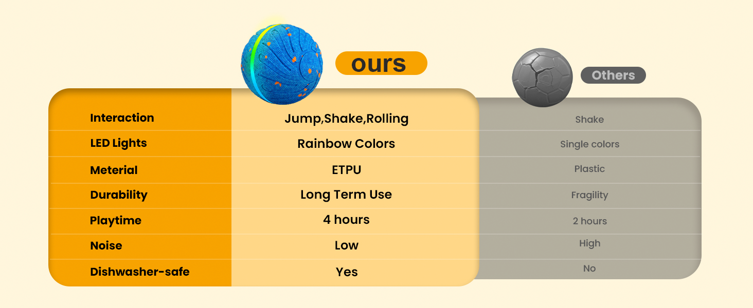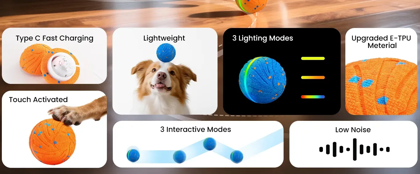 Patented RGB lights cycle through mesmerizing patterns to captivate curious pups. The moving dog ball becomes a glowing companion for nighttime fetch, keeping dogs engaged 2X longer than standard toys.