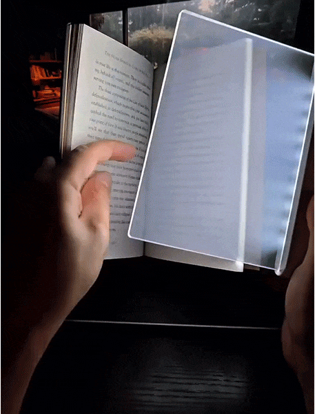 The Smart LED Book Light is designed for enjoying your favorite books in complete darkness. This rechargeable flat reading lamp focuses solely on your pages, providing a clear full page light that won't disturb others around you.