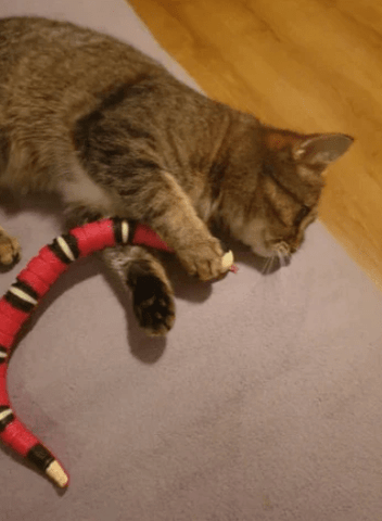 A bored cat that sleeps all day is an unhealthy cat. It's important to provide them with stimulating toys they can use even if you're not there. This smart snake toy catches your cat's eyes and attention and provides exercise and stimulation.