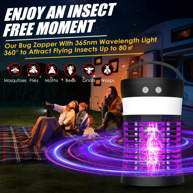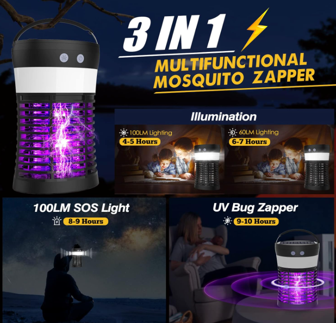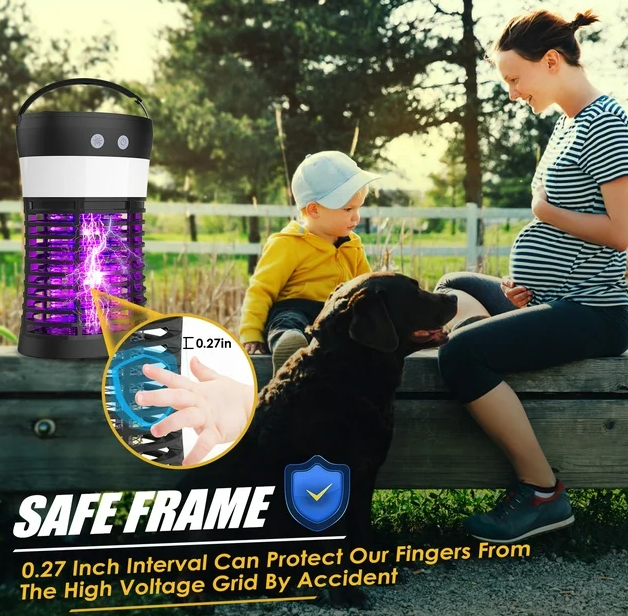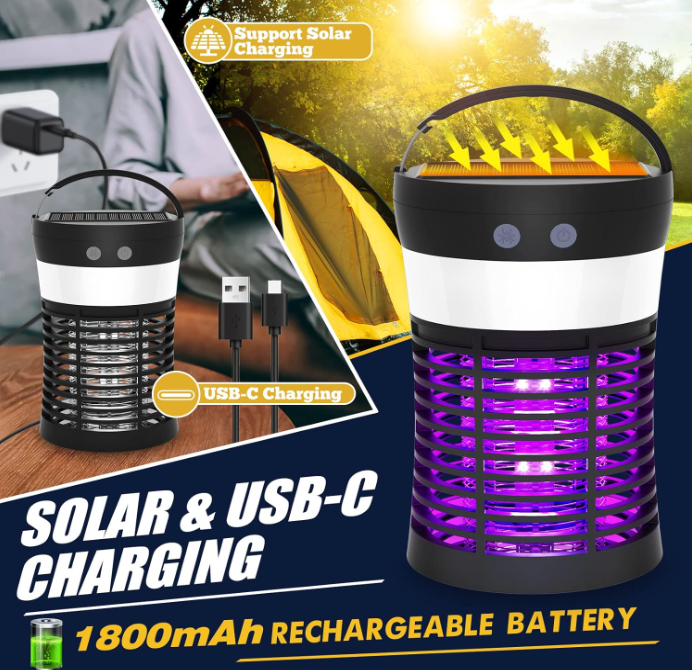 This innovative outdoor bug zapper is powered by solar energy or electric, making it an eco-friendly and cost-effective solution. It's also waterproof and rechargeable, ensuring it can withstand all weather conditions and provide reliable performance for years to come.Featuring advanced mosquito trapping technology, this waterpoof bug zapper can effectively eliminate mosquitos and other flying insects within a 500 square feet area. It's perfect for use in your backyard, patio, or camping trips.