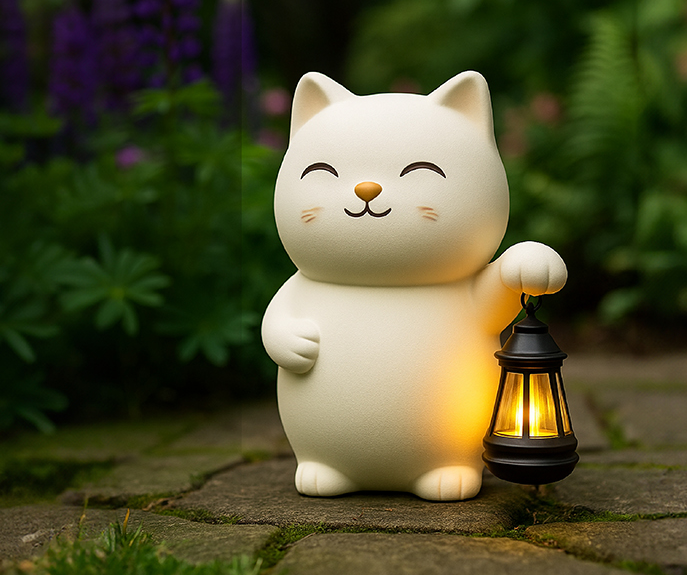 Designed for Outdoor Gardens & Patios This cat garden statue is made to enhance outdoor spaces including gardens, patios, porches, and lawns. A charming decorative accent that looks beautiful by day and softly illuminates your garden at night.
