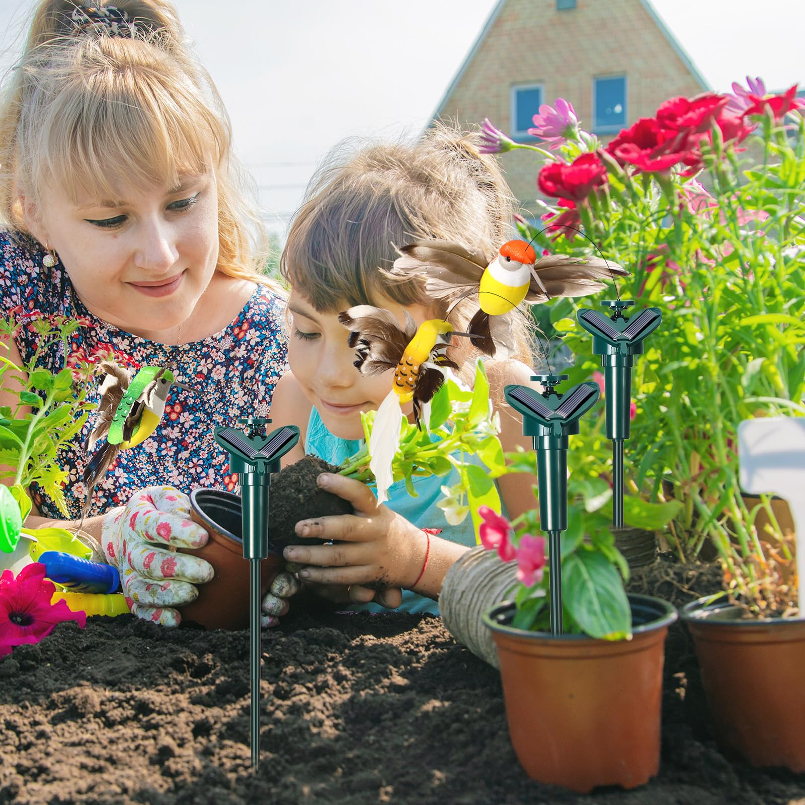 These fluttering hummingbird solar garden stakes serve as an attractive decorative piece that can be applied in gardens, balconies, yard