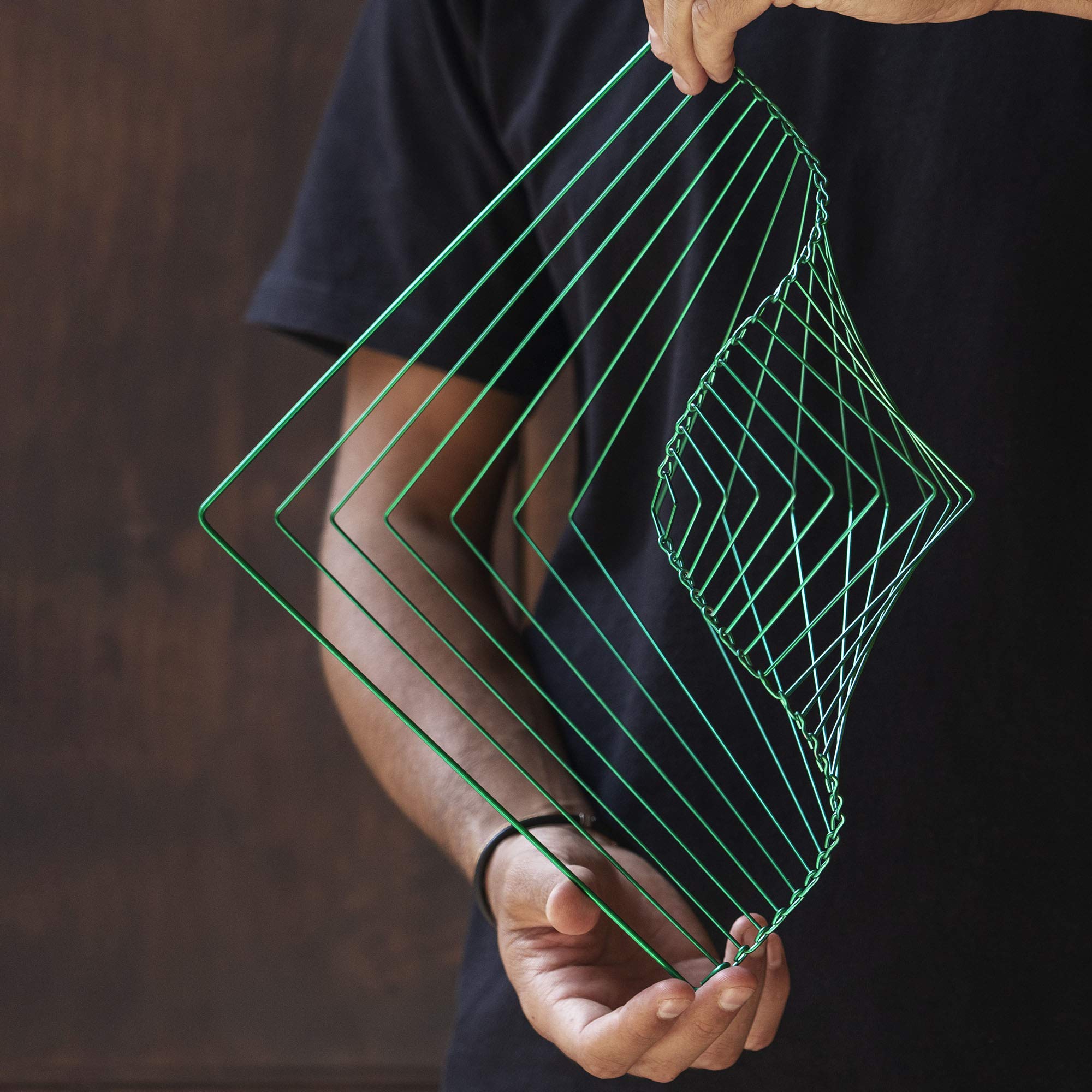 Square Wave was originally created as an artistic sculpture long before it was considered to be a relaxing, mind focusing dynamic kinetic spinner. When not in use, it adds an element of elegance to any style interior whether it be modern, classic or vintage. Square Wave is the perfect accent for every room in your home or office. Its beauty is timeless and it never seems out of place. You can hang it from the ceiling as kinetic sculpture or play with it whenever you feel like it. Square Wave is a truly rare and unique example of originality combined with stunning design.