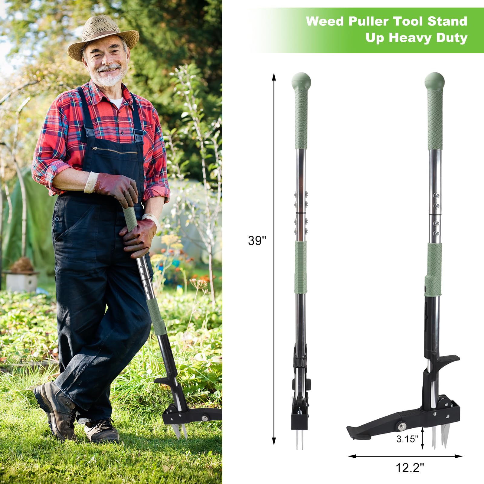 Say goodbye to sore knees and endless bending, use our stand-up weed puller, make you remove weeds effortlessly while standing tall. Ergonomic design and powerful grip, remove stubborn weed roots easily, stop its regrow, no more toxic chemical to get rid of weed, more eco-friendly. Ideal for individuals with chronic back pain and elderly gardeners.