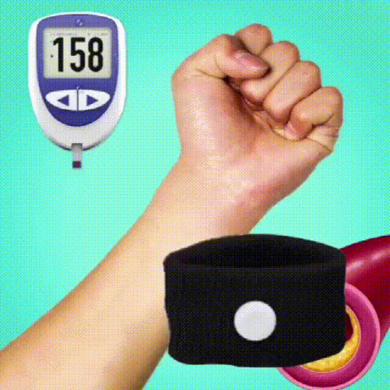 The wristband applies gentle pressure to P6 acupuncture points to stimulate specific bodily functions to regulate blood glucose levels.