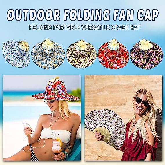 Dual-use: Not only a sunhat, but also a hand fan! When sweating, it can also be opened half as a hand fan. With hooks and loops fastener, easy to connect 2 sides into a sunhat.