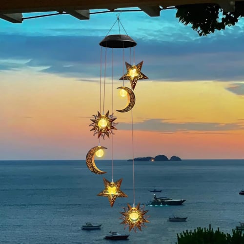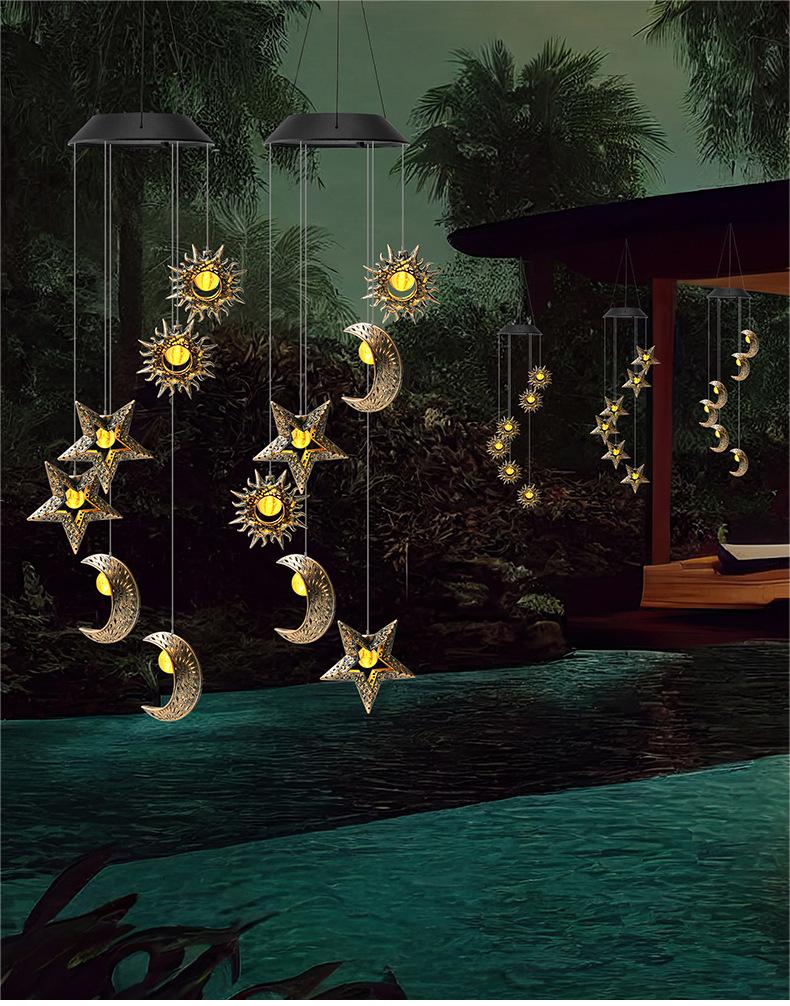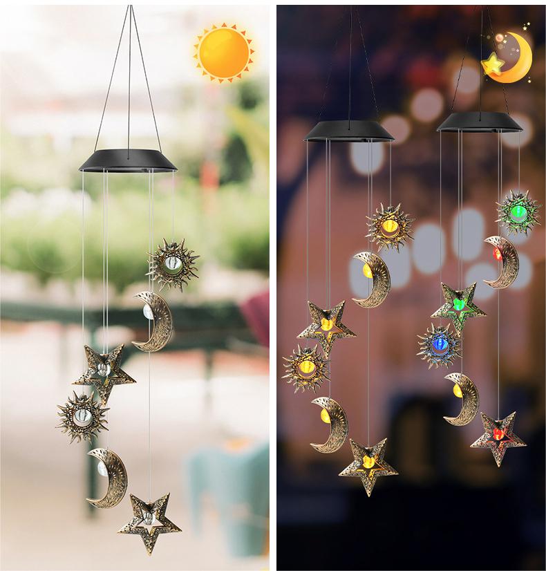 It just feel like that you own an whole night sky in the home when you hook the glowing sun star moon wind chimes up at night. You can never imagine how cozy the time will be when you are sitting and chatting with your friends or families in the shine of the solar wind chimes light.