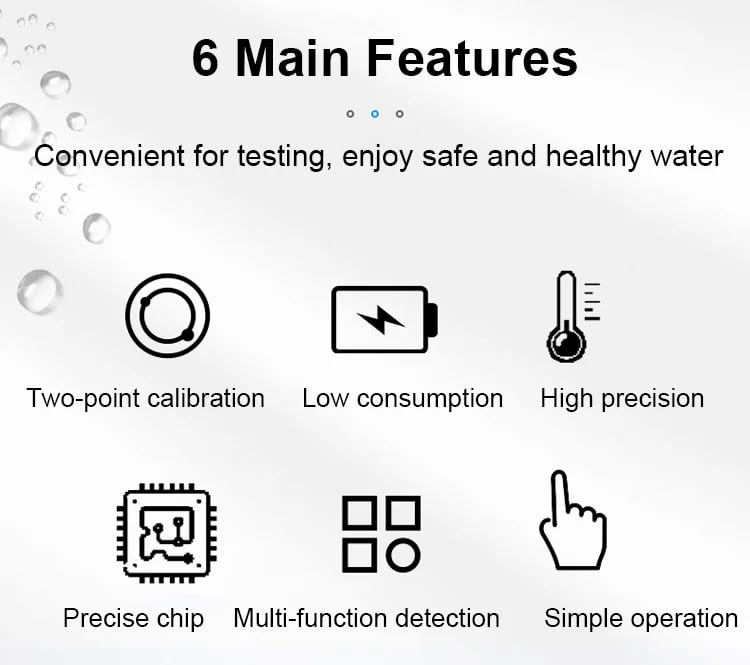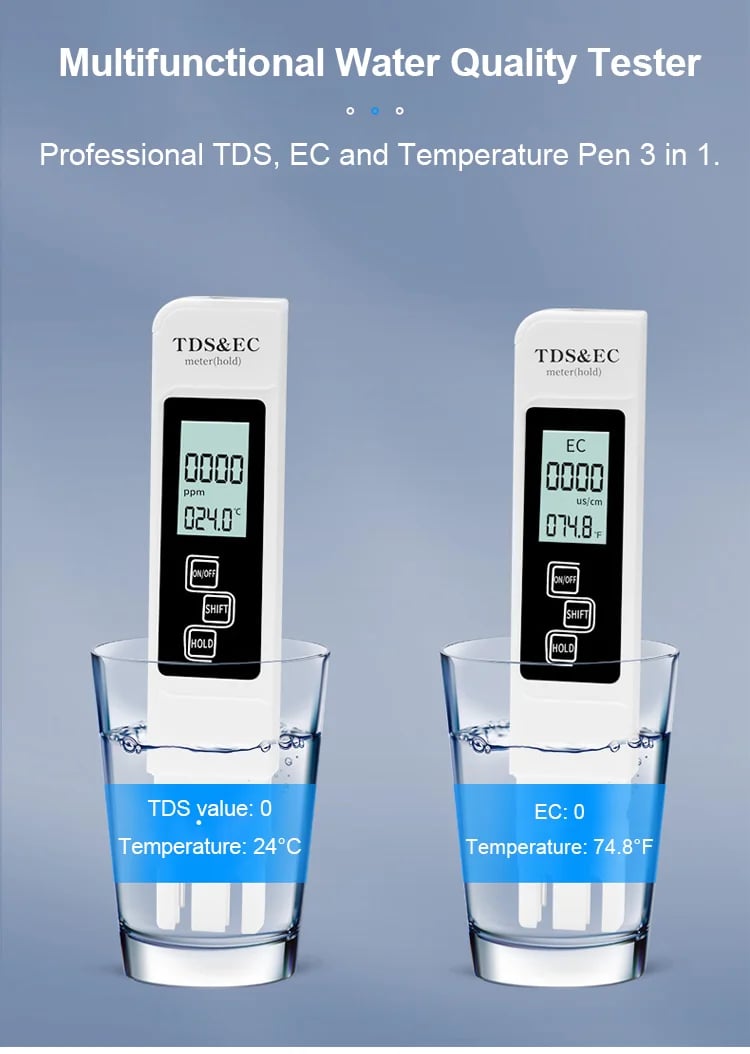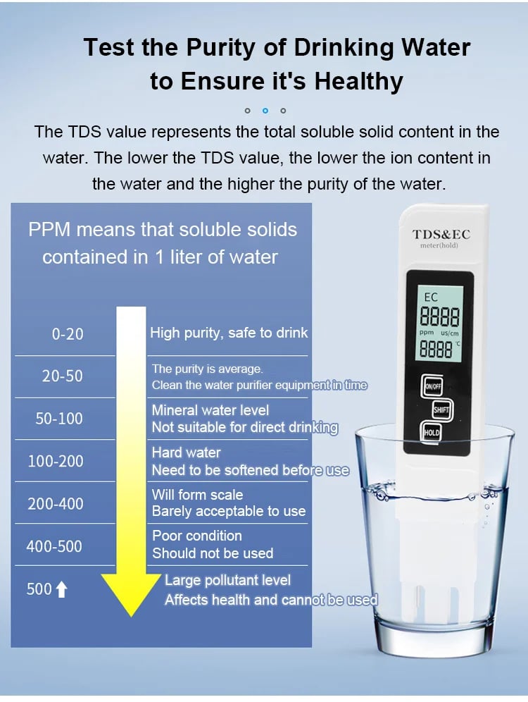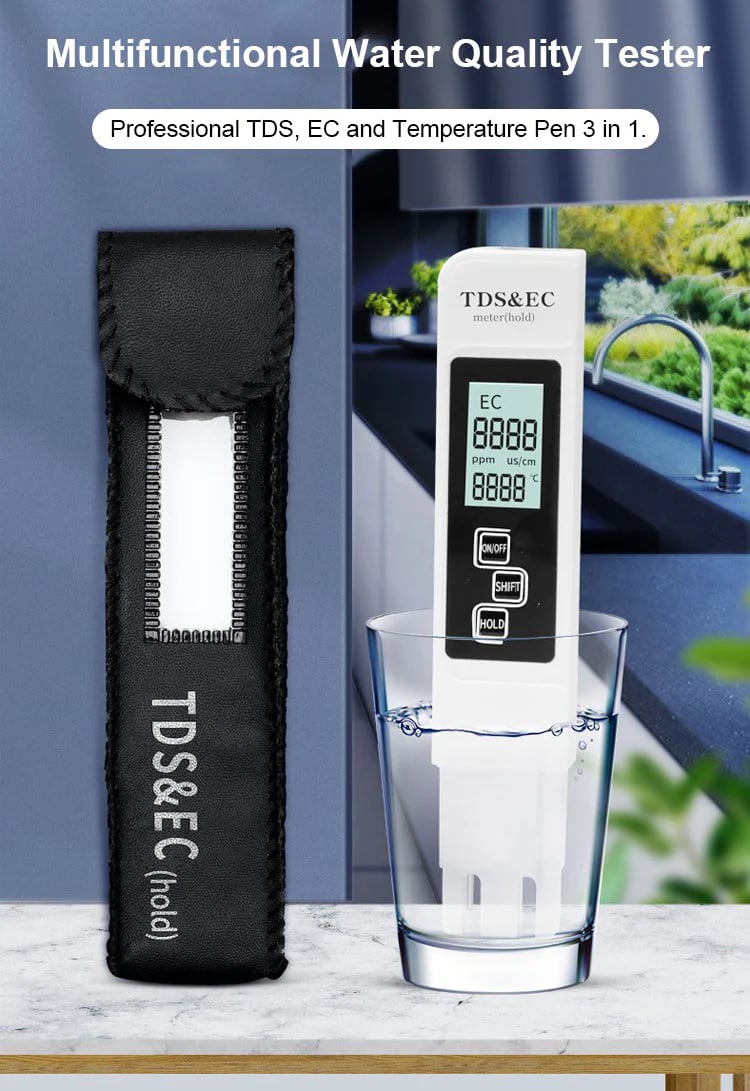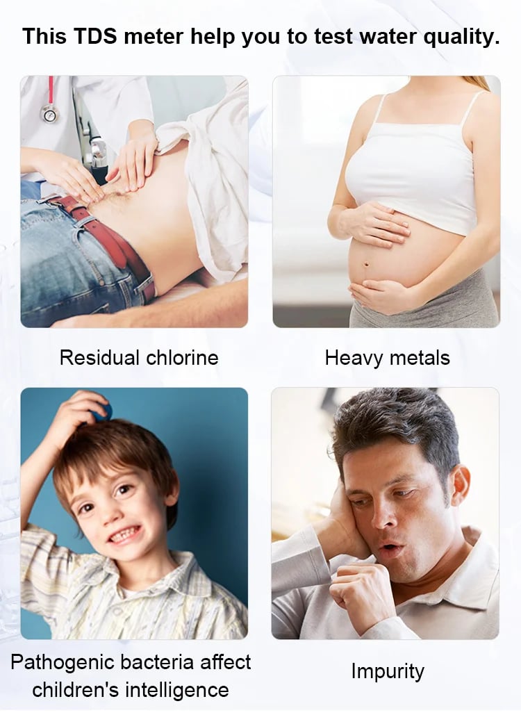 TDS Water Quality Test Meter performs as a guard who helps monitor water quality to tell you whether the water meets standards of drinking, so that you have a clear mind of water status and take measures to protection water safety for your family.