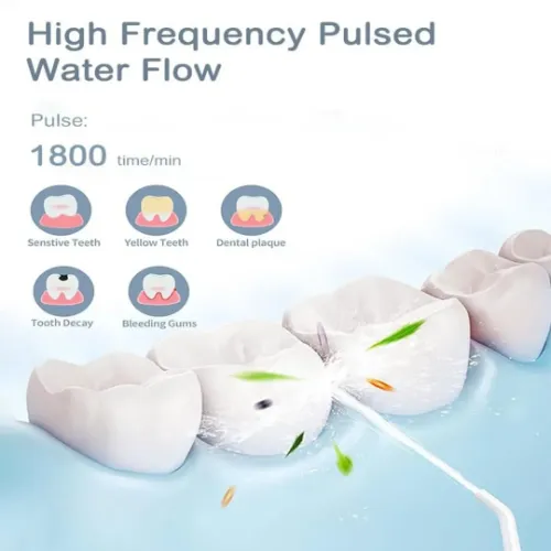 With 1800 times/minute high pressure water pulse and 4 jet water dental flosser, 360° rotating long nozzle. The cordless water teeth cleaner pick can powerful cleaning 99.99% food debris and plaque every corner precisely that traditional brushing can not reach. 3 adjustable water pressure settings allow you to find the most suitable pressure setting for your teeth and each family member.