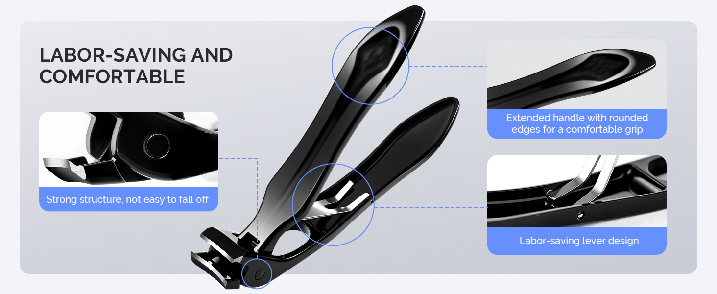 Extended Comfort Grip: Lengthened handles with smooth rounded edges fit naturally in hand. Non-slip control makes these nail clippers for men and women effortless to use.