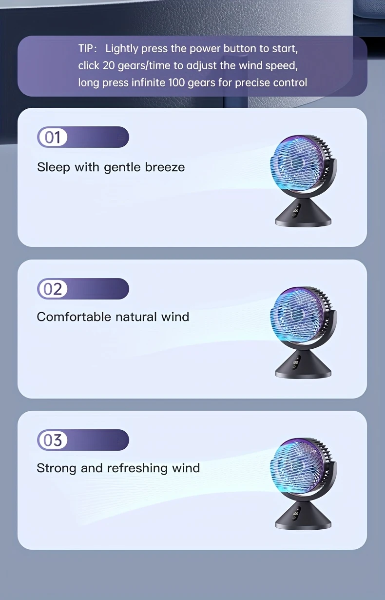 Redefining airflow precision, this 100-speed desktop circulation fan combines military-grade engineering with smart home elegance to deliver unparalleled comfort.