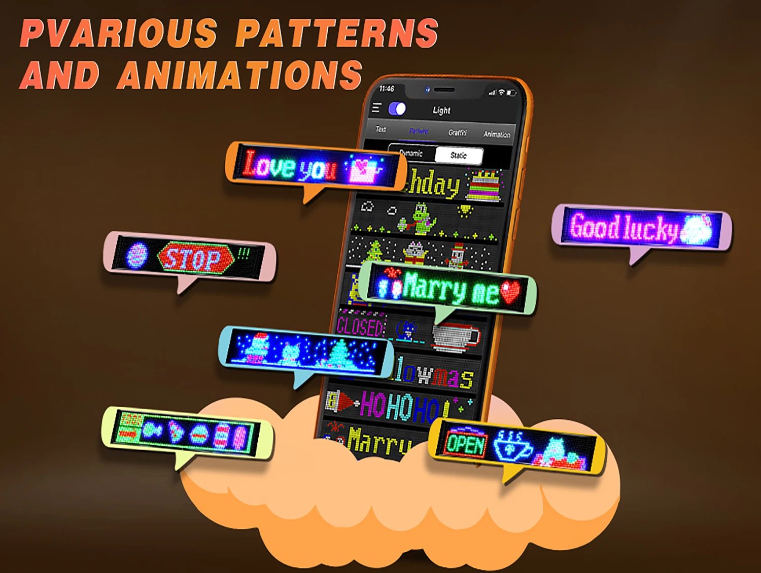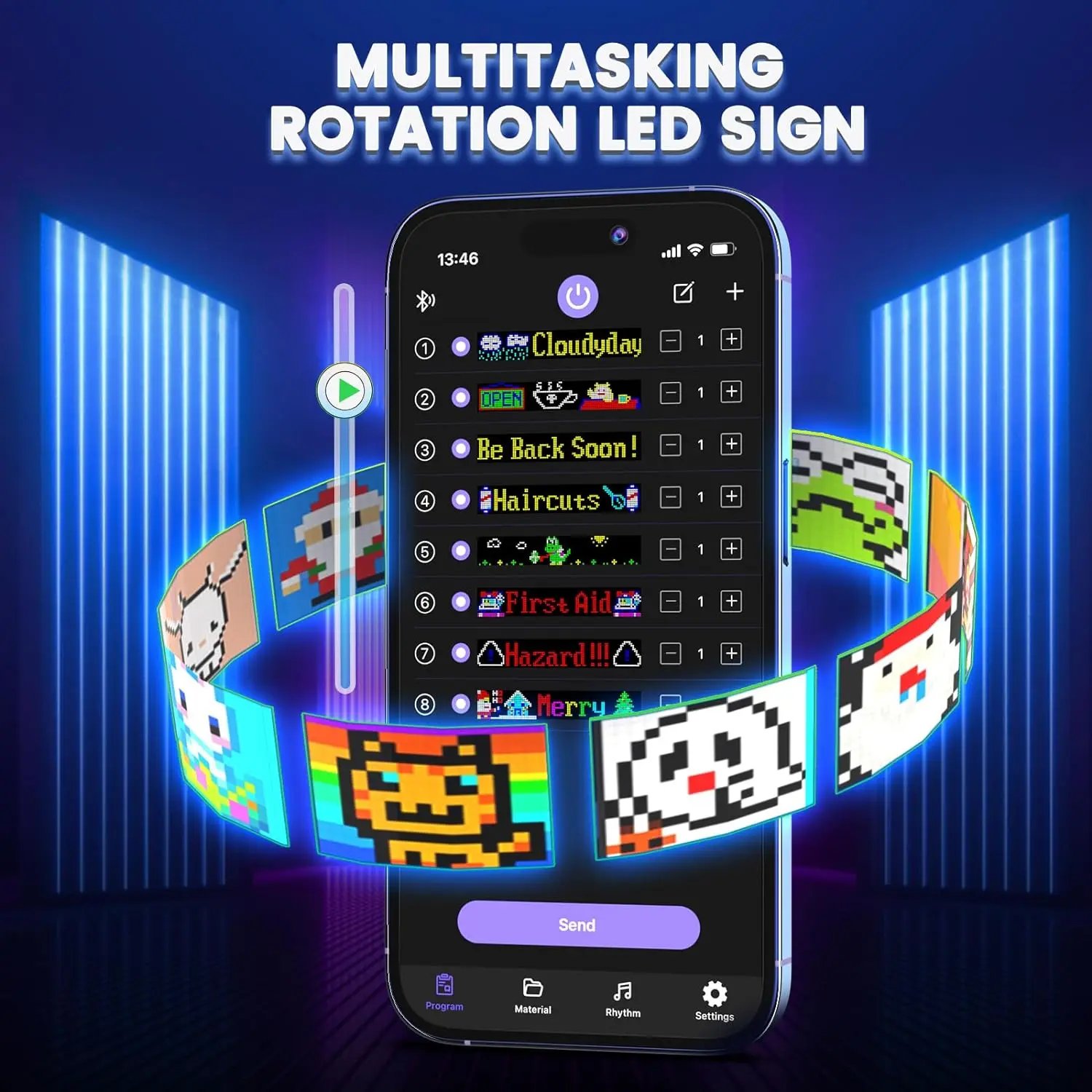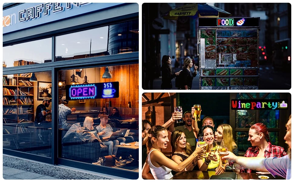 LED sign is controlled by a Bluetooth-connected app, which supports connecting multiple LED displays at the same time, making your store more eye-catching, the app has built-in many interesting modes and animations. Your phone makes it easier to customize fun patterns and text to personalize your store.