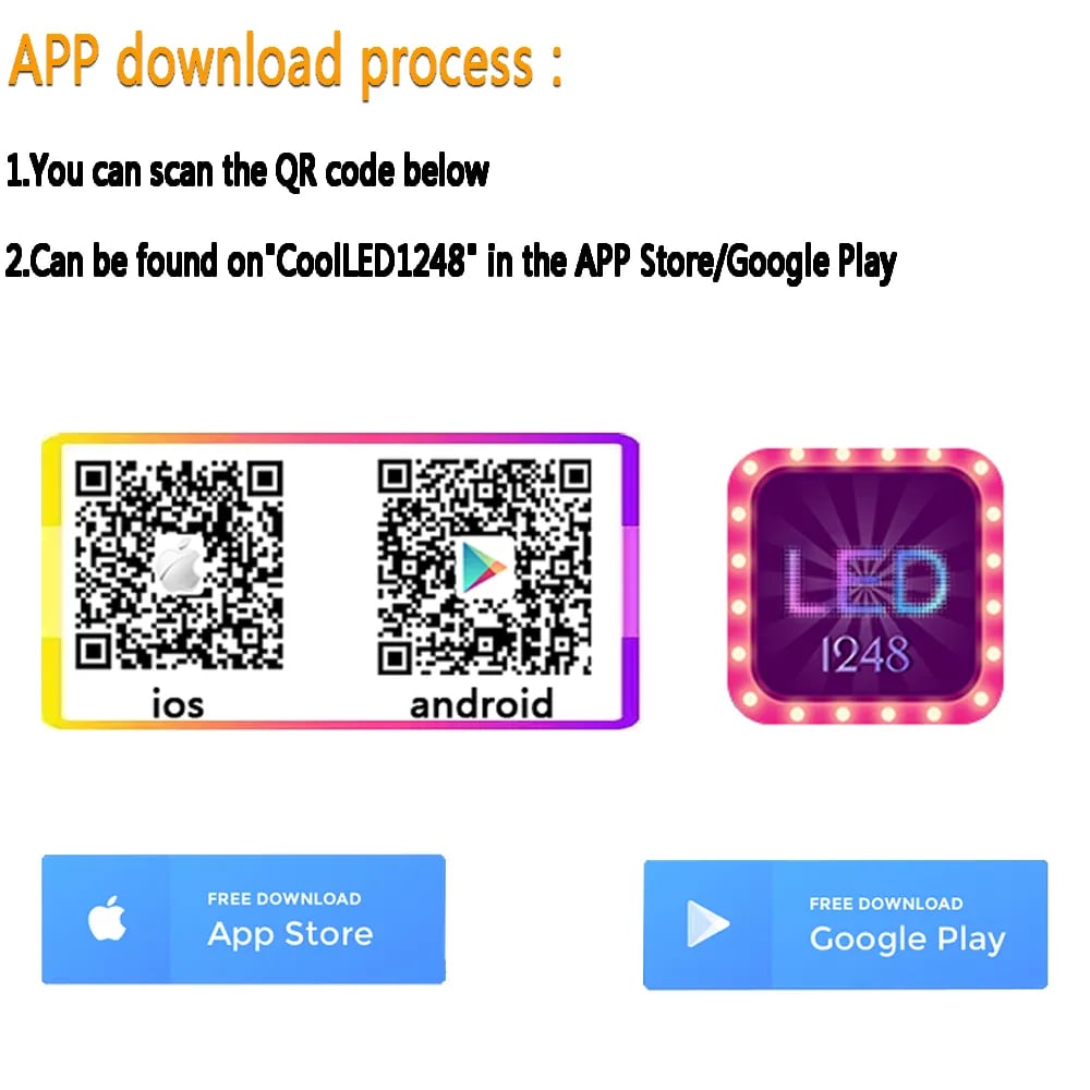 2.Can be found on"CoolLED1248" in the APP Store/Google Play