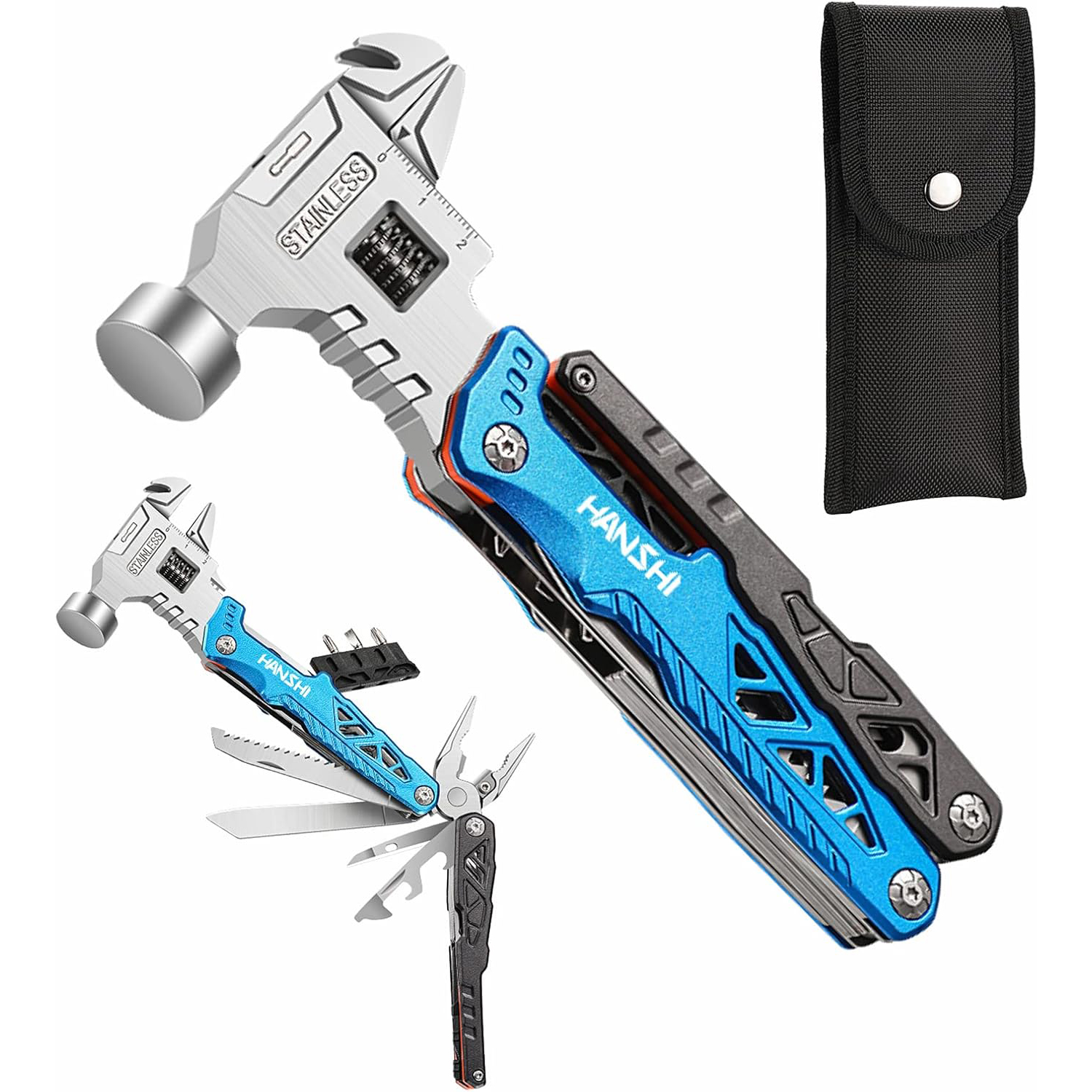 18 in 1 Multi Functional Tool: HANSHI multifunctional tool includes adjustable wrench,hammer,nail puller,wrench,screwdrivers,wire cutter,regular plier,needle nose plier,flint rod,safty whistle,bottle opener,can opener,threader,knife,saw