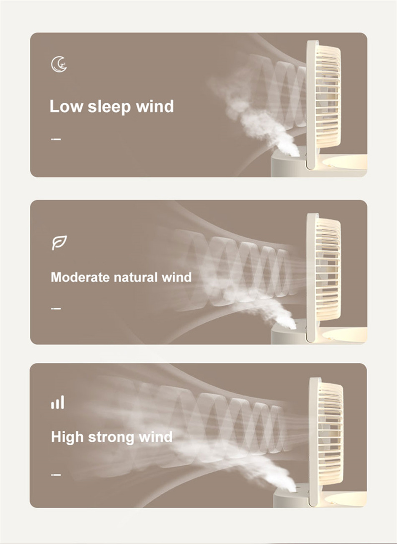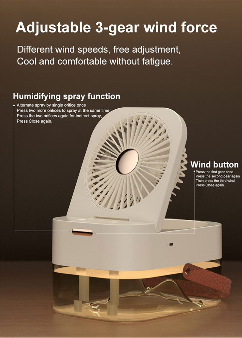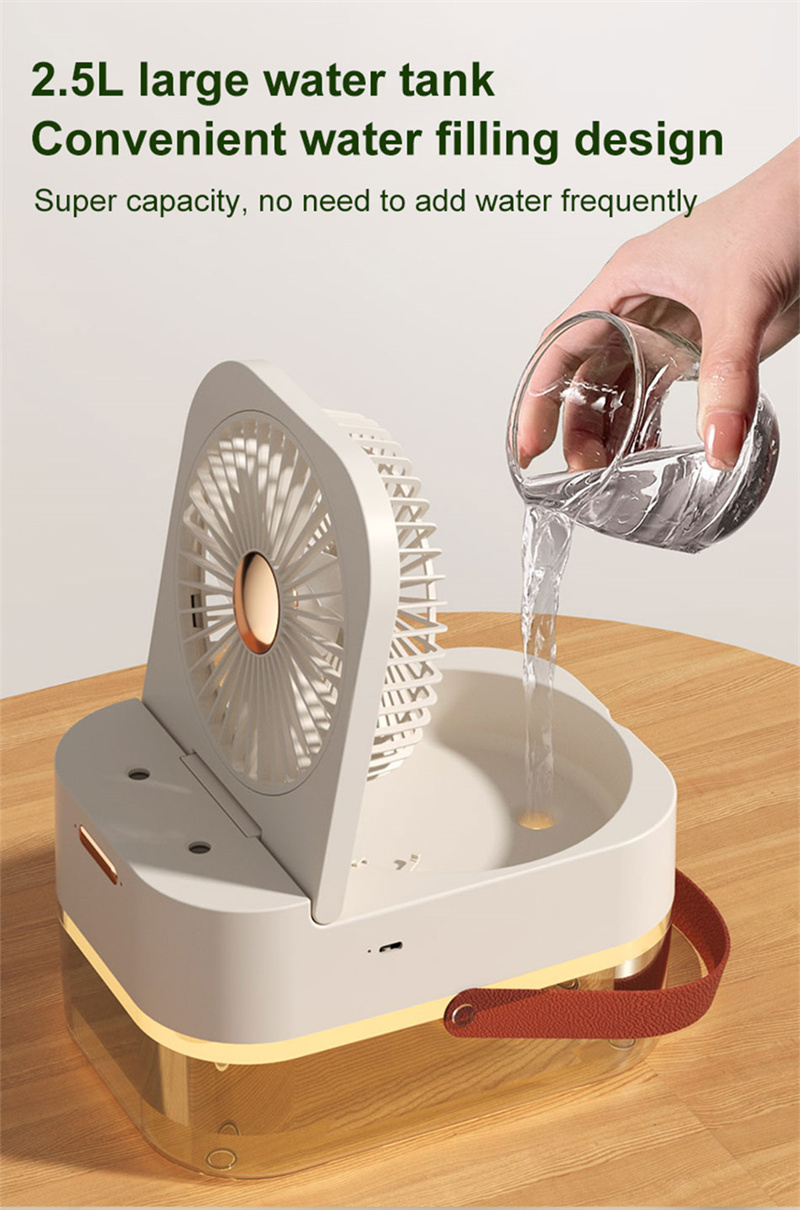 2.5L large water tank: This high-speed atomization fan can achieve maximum cooling power. This fan has independently controlled double spray ports, low noise operation and 2.5L large water tank, which is very suitable for outdoor use in hot summer.