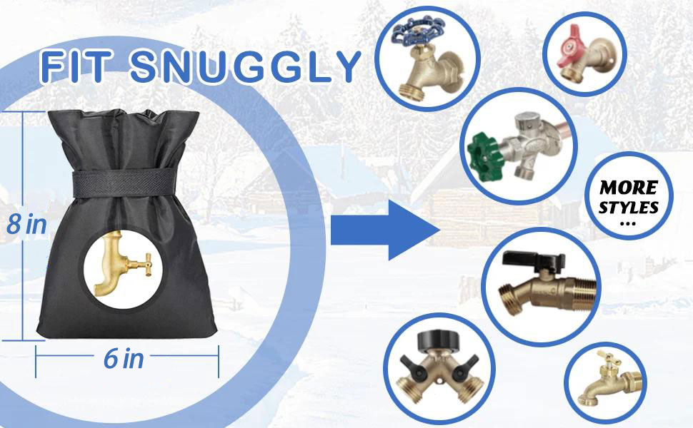 Wrap ANY TYPES of FAUCETS to prevent freezing this winter! Great to protect your faucet from freezing in extreme weather, such as heavy snow, ice accumulation, freezing temperatures, and wind chill. Prevent clogged faucet pipes from freezing, cracking, and bursting, leading to costly repairs.