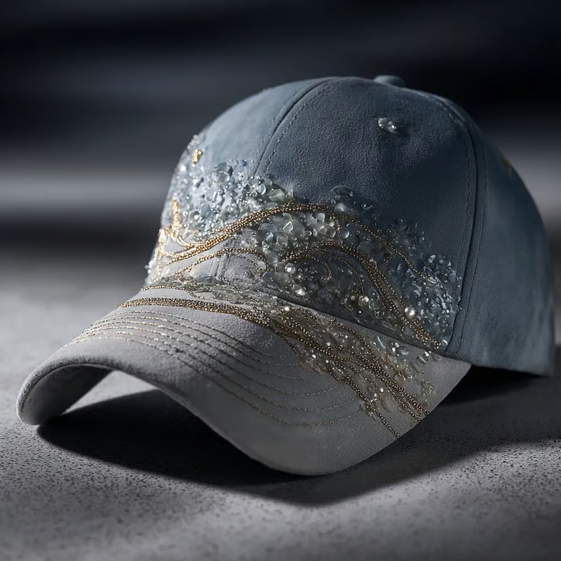 🌊 Ocean-Inspired Design – Elegant silver wave embroidery sweeps across the cap, echoing the soft motion of tides and sea breeze.