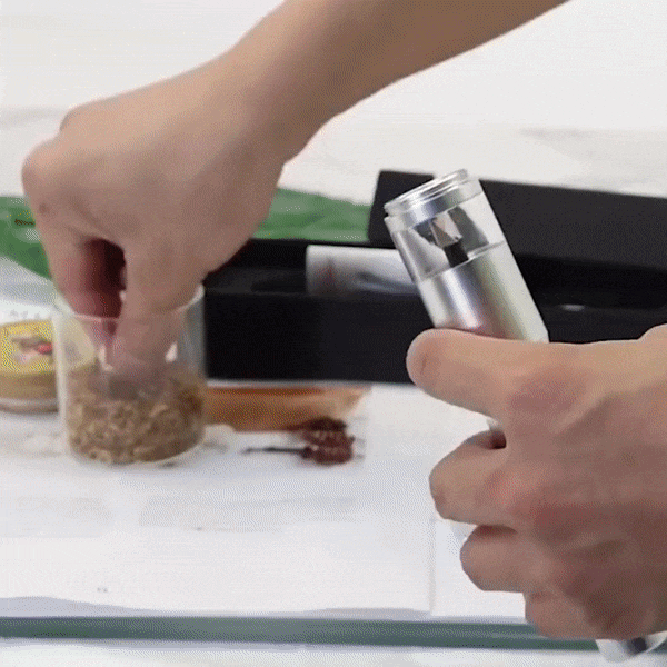 But the innovation doesn't stop at grinding. After your herbs have undergone this transformation, you'll discover a discreetly located small opening at the tip of the grinder, purposefully designed for precise dispensing. Take control of the flow with finesse, ensuring that not a speck of your precious herbs goes to waste. With our grinder, every moment is a testament to efficient, refined herb preparation.