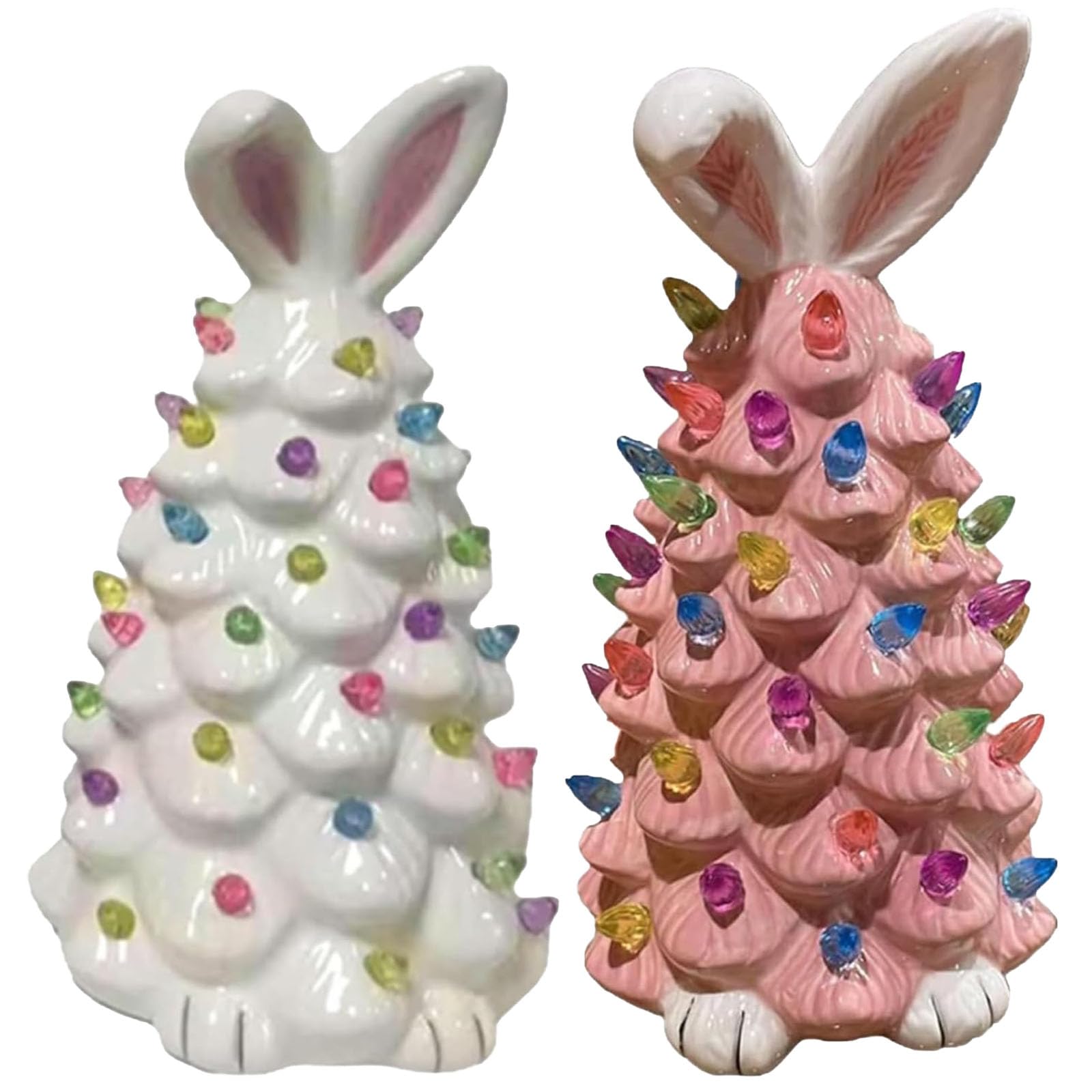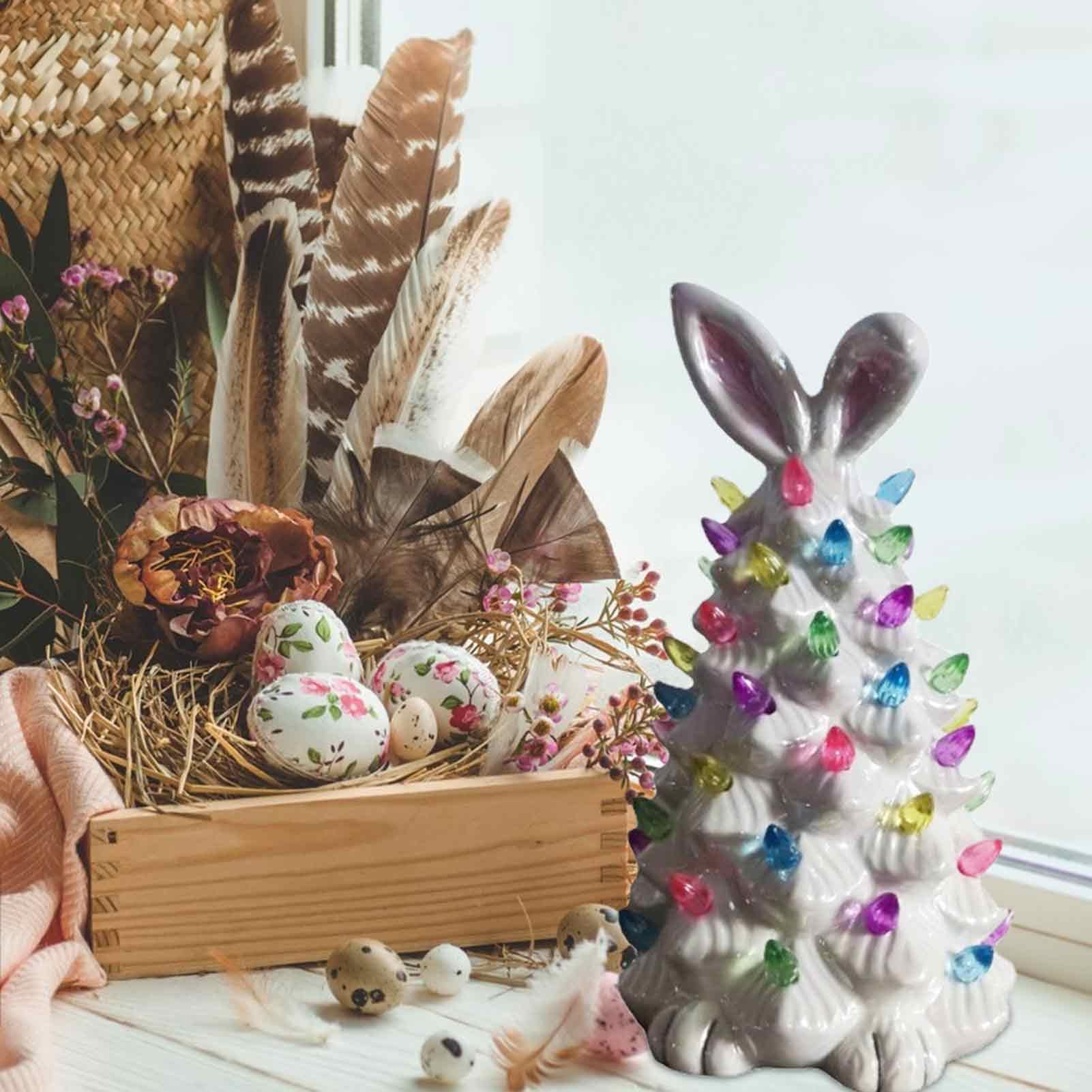 LED lights radiate through the multi-colored pastel faceted bulbs, and an adorable bunny topper illuminates the top of this 6" glossy white tree.