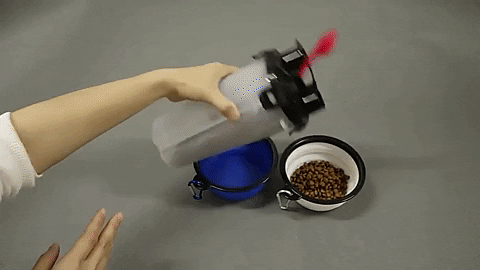 The bottle is equipped with a separator net to prevent you from pouring into the other half of the bottle when you add dog food.