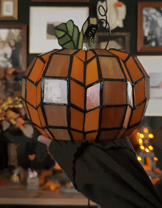 🎃Orange Indoor Patch the Pumpkin Stained Resin Accent Lamp is a delightful Tiffany-Style accent lamp that brings a charming touch to your home decor.