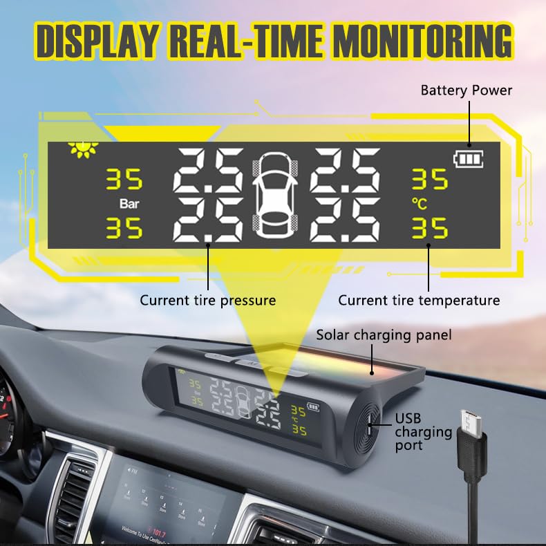 🏆Solar Powered Car Tire Pressure Monitoring Tool
