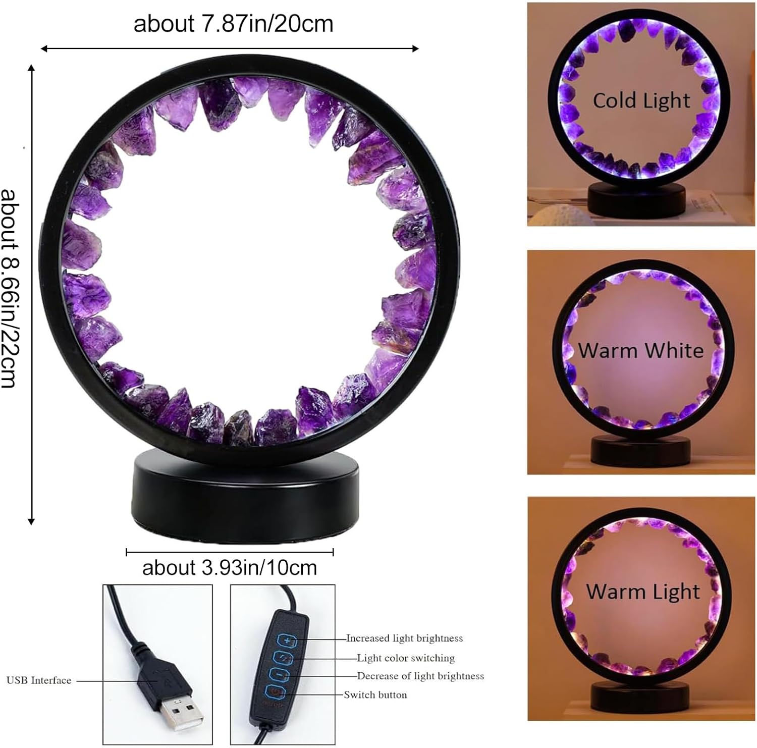Stunning Natural Amethyst: Our night light features genuine natural amethyst. Each crystal is carefully selected to showcase its unique colour and texture variations, making it a truly one-of-a-kind decorative piece. Amethyst is known for its ability to promote relaxation and enhance sleep by reducing stress and anxiety levels. Place this night light in your bedroom or nursery to create a peaceful environment for a restful night's sleep and good dreams.