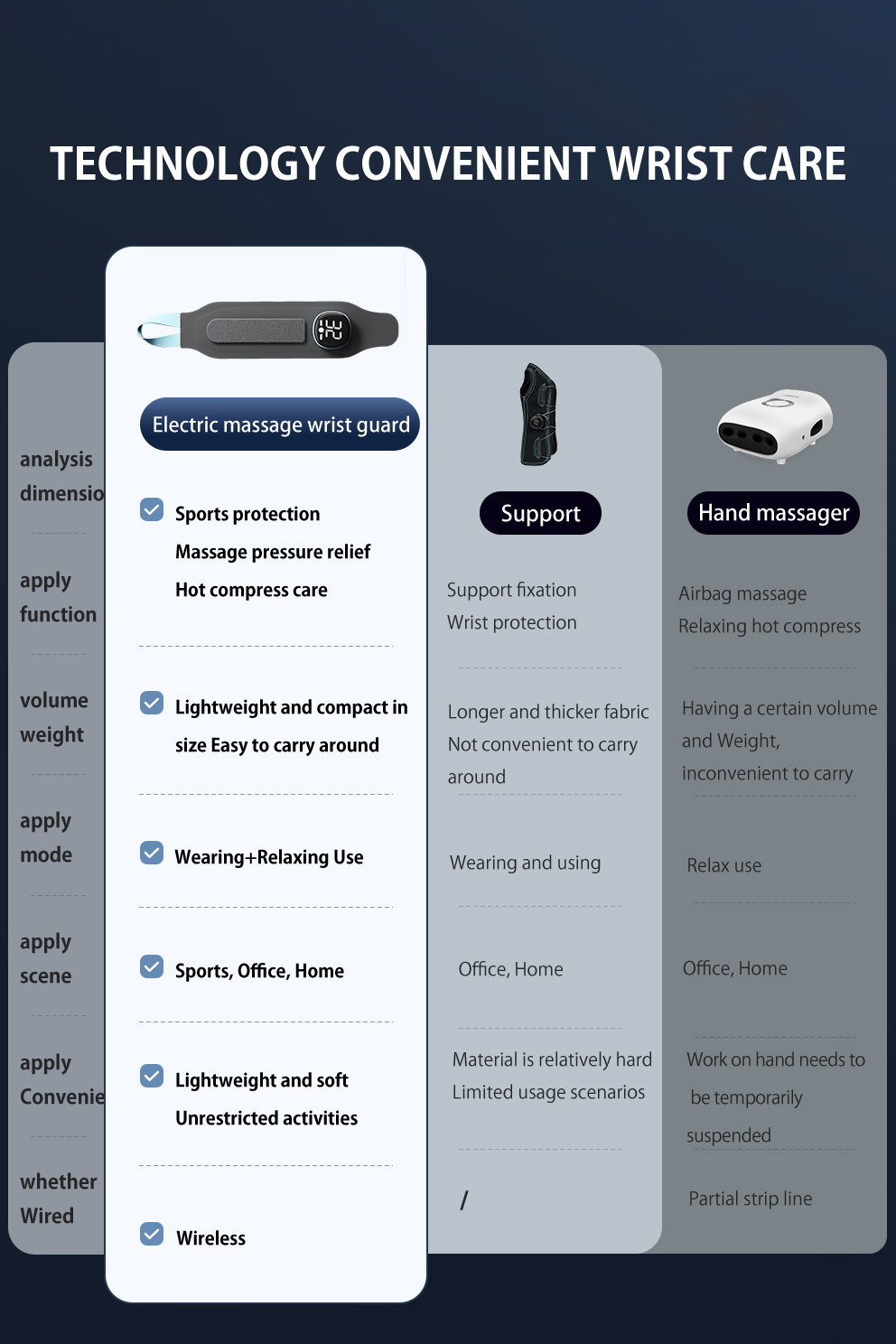 The comprehensive approach of compression, heat therapy & low EMS stimulation targets the underlying causes of wrist pain, restoring comfort & enhancing mobility across a range of conditions.