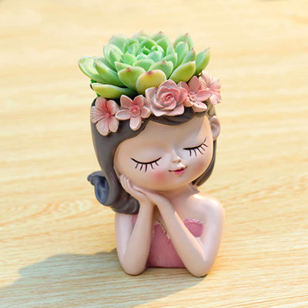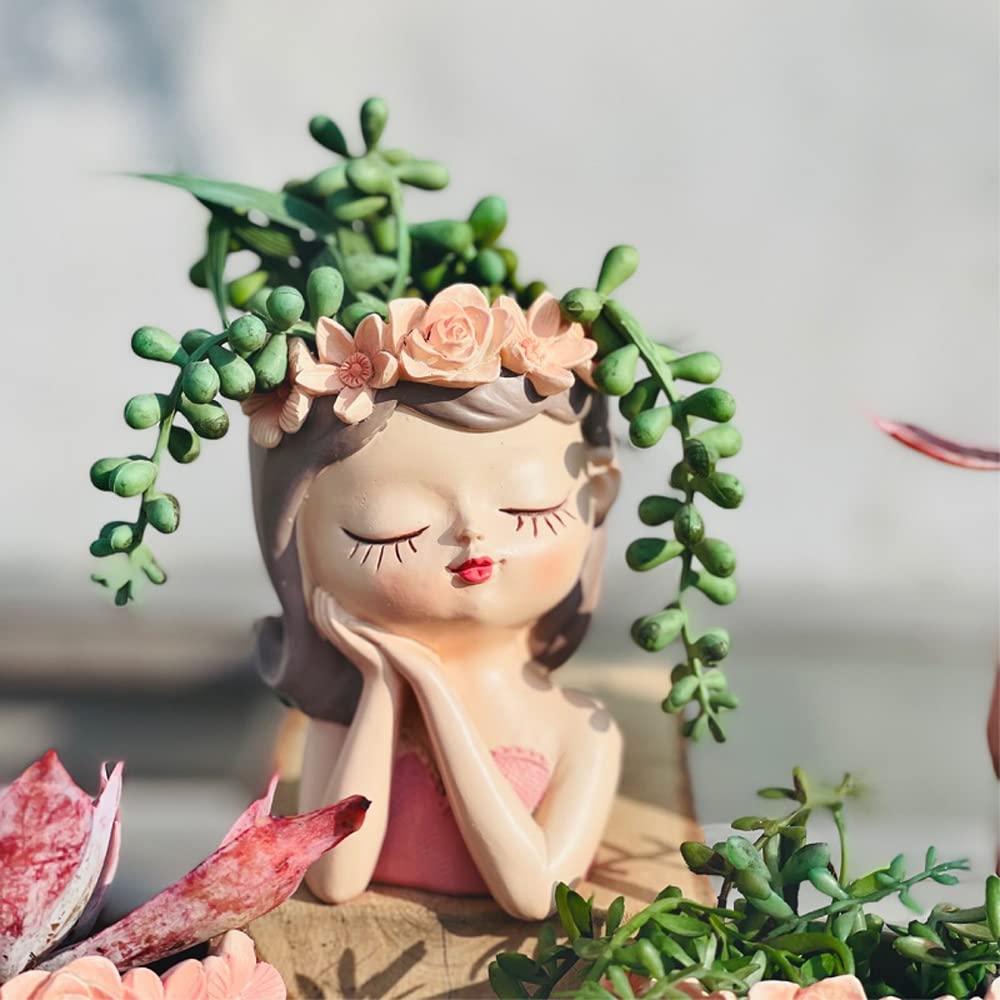 Hand-crafted succulent planters in girl lady design, with resin material, a great addition in your home..