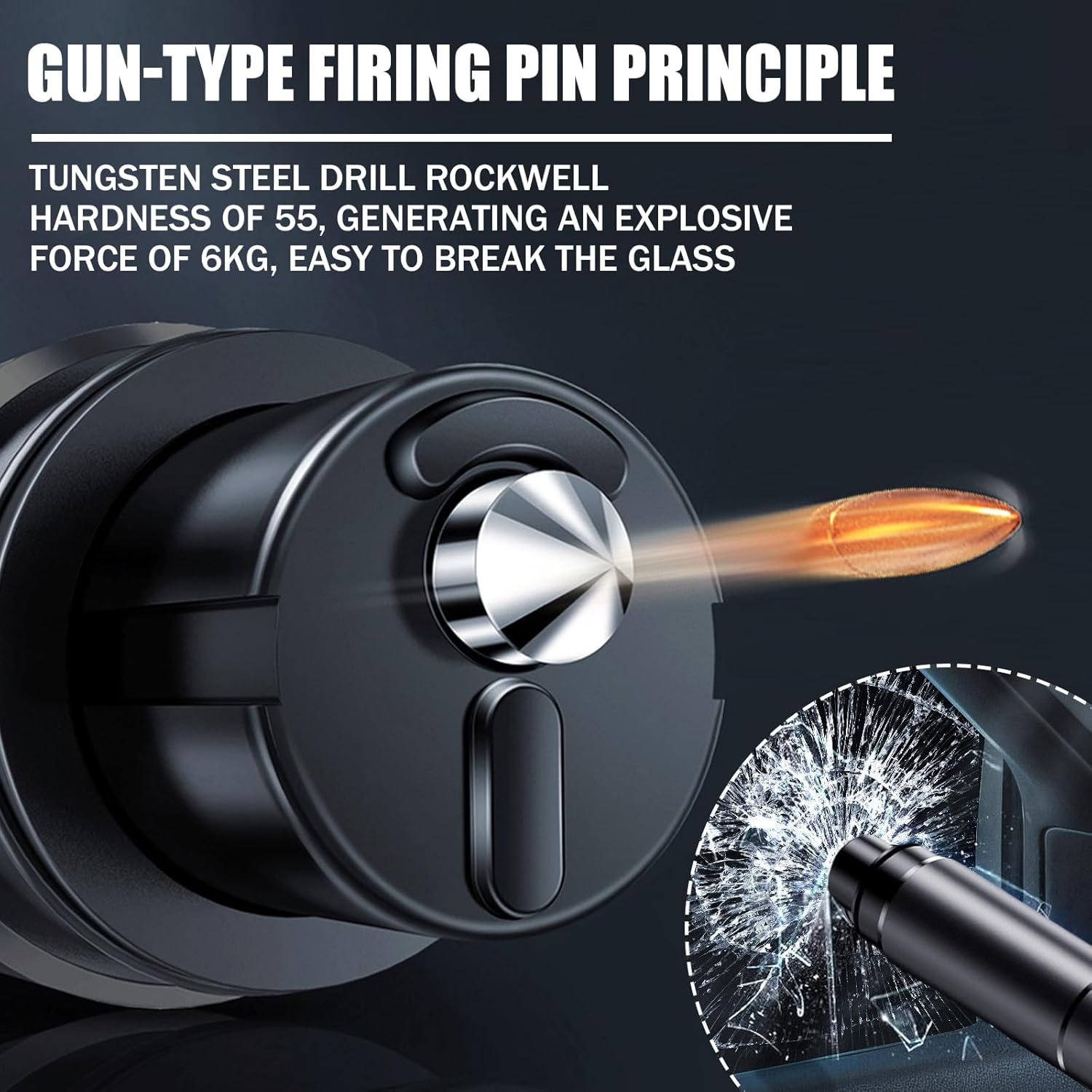 Gun-Type Firing Pin Principle: Instantaneous outbreak of super strength, tungsten steel parts Rockwell hardness of 55, generating an explosive force of about 6kg, easy to break the glass. safehammer glass breaker is recommended to put 2-4 on top of one vehicle to get out of danger in the fastest time.