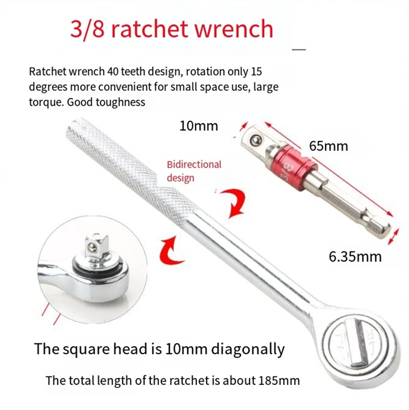 Our products include multi-functional adjustable 10-19mm sockets - joint rods - 3/8 ratchet rods