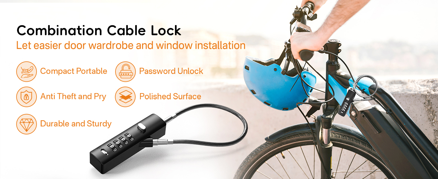 【Sturdy Steel Cable Lock】: This Cable lock features a zinc alloy body and hardened steel construction for superior safety. Its smooth design allows for flexible use in various scenarios and helps prevent scratches