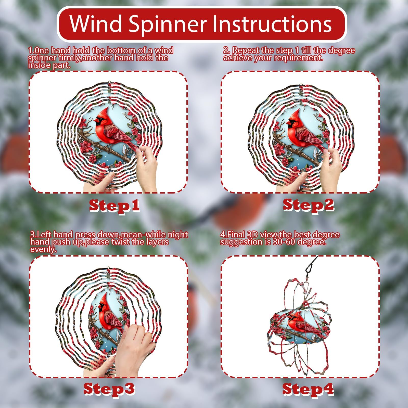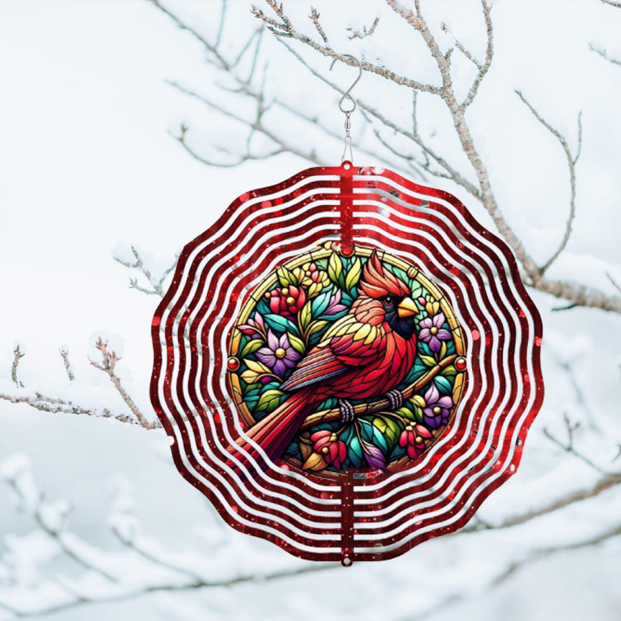 Striking Christmas Design: Wind spinners outdoor features a vividly colored red cardinal amidst cherry blossoms, adding a touch of elegance and nature to your outdoor space.