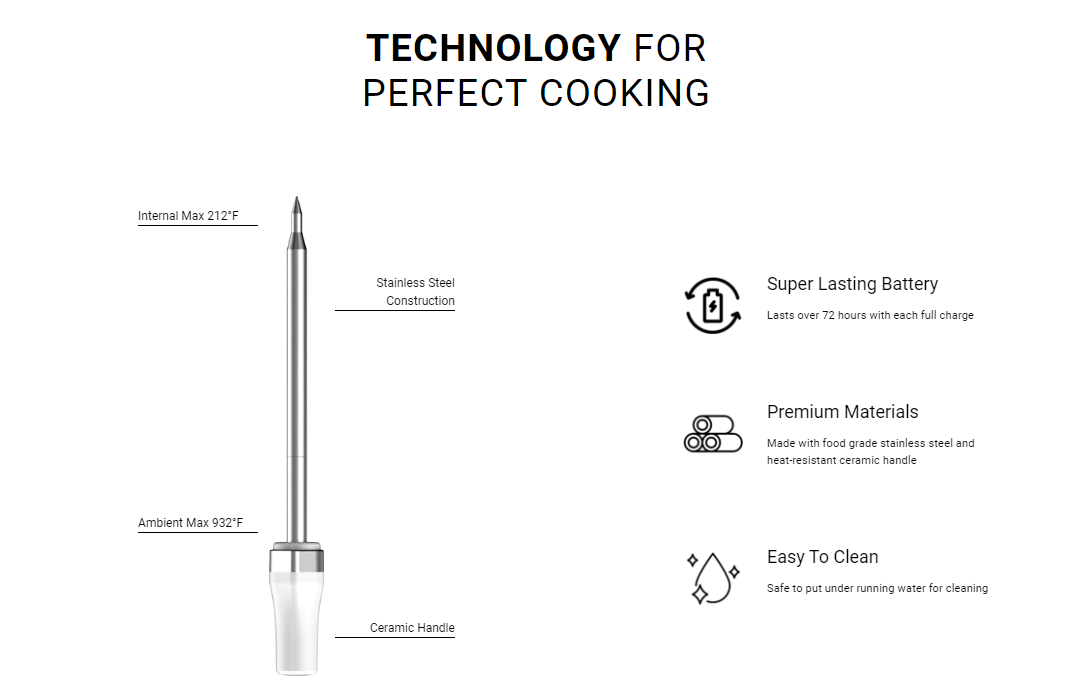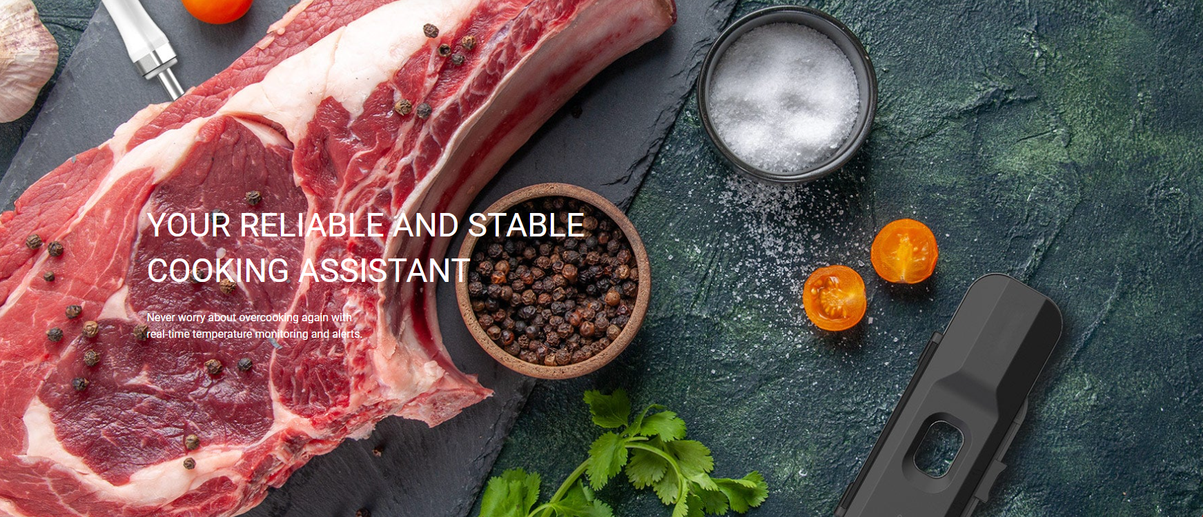 Perfectly Cooked Every Time! Get your hands on our smart Bluetooth meat thermometer and cook like a pro every time. Monitor your meat's temperature remotely and never overcook or undercook again. A smart choice to stand out from the competition, it's a must-have for ovens, grills, pans, sous-vide, grills, smokers, rotisserie, and more!